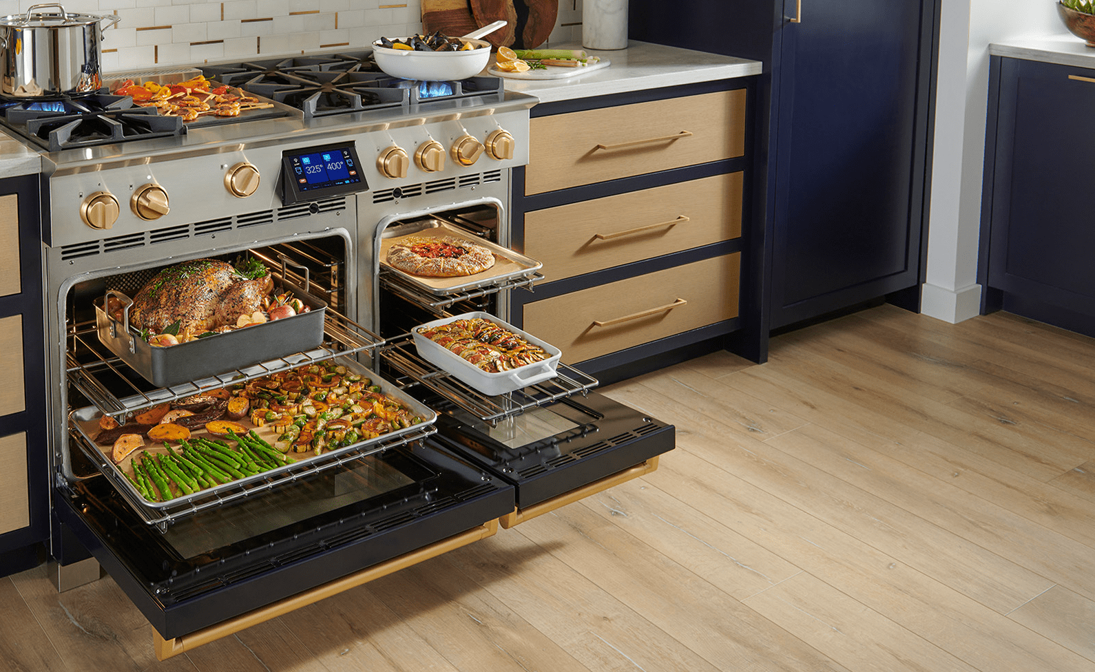 Bluestar’s new dual fuel ranges combine the power of gas burners with the precision of an electric convection oven for the ultimate cooking experience. The gas cooktop provides high-performance heat for quick and controlled cooking, while the electric oven offers consistent temperature accuracy, making it perfect for baking and roasting. As with all Bluestar products, this range is fully customizable, offering a wide selection of colors and configurations to match any kitchen design. Constructed from durable stainless steel, the dual fuel range is built to withstand daily use. Due to its advanced features, professional expertise is required to repair and maintain these ranges for peak performance and longevity.